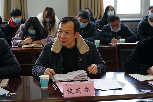 会上,校友办负责人对校友相关工作作安排。余涛作进一步强调,他要求各学院认清形势、把握重点、掌握方法做好校友工作,结合黄石校友招商推介会、学校50周年校庆等重要节点深化校友联络与服务工作。