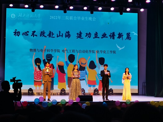 为加强毕业生教育,营造和谐向上的校园文化氛围,电气工程与自动化学院联合物理与电子科学学院、化学与化工学院于5月15日晚18时30分在湖师大礼堂举办了2022届毕业生晚会,三院领导班子、辅导员、毕业班班主任、教师代表以及毕业生观看了晚会。