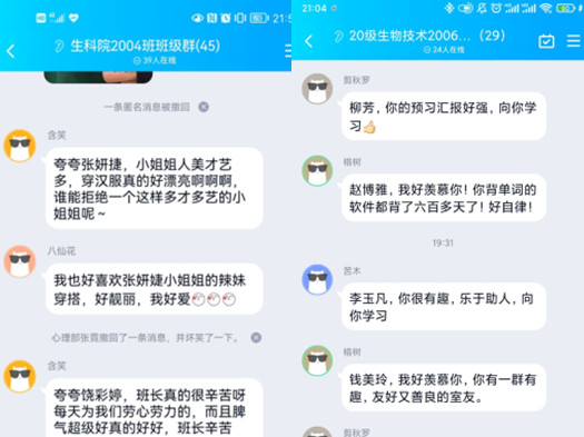 此次活动中,各班级同学以匿名方式表达心里话,以匿名夸奖的形式帮助同学提升自信心,同学们通过他人视角发现自身优点,从而正确认识自己、悦纳自己。活动采取线上线下相结合的方式开展,其中大一学生采用线下方式,大二、大三、大四学生则通过线上方式。