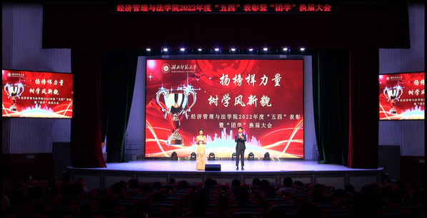 为深入学习贯彻yl23455永利官网总书记在庆祝中国共青团成立100周年大会上重要讲话精神,表彰先进、树立典型,扎实推进学院学风建设,5月30日,经济管理与法学院在湖师大礼堂举办了“扬榜样力量 树学风新貌”五四表彰暨“团学”换届大会。校党委常委、副校长雷儒金,校团委书记杨志丹,学生工作部、人武部副部长林松,经管法学院领导班子、班主任、辅导员,部分学生代表参加大会。