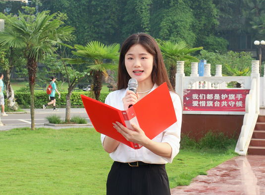 仪式中,学生代表李佳以“生而逢盛世,青年当有为”为题作国旗下演讲。她从新时代青年大学生的身份出发,呼吁同学们树立理想,勇担责任,脚踏实地,顽强拼搏,为实现伟大中国梦贡献自己的青春力量。