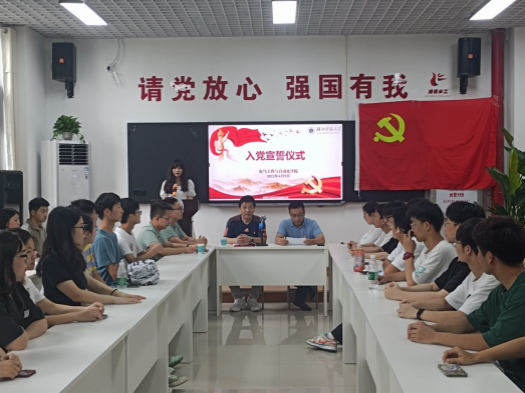 为加强对预备党员的党性教育,6月9日下午,电气工程与自动化学院在学校至诚“一站式”学生社区举办2022年上半年新发展党员的入党宣誓仪式。参加此次仪式的人员有电气学院党总支书记张国祥、副书记陈江华,学生党支部书记和全体学生党员,仪式由学生第一党支部书记王梦茜主持。