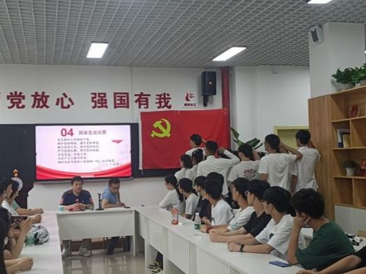 随后张国祥同志致辞,他对新加入党组织的同志表示祝贺,鼓励大家用入党誓词激励自己,不断提高对党的事业的责任感,成长为一名优秀的共产党员。在宣誓环节,预备党员代表高学文同志领读誓词,18名预备党员面向党旗庄严宣誓,为共产主义奋斗终身。,刘思杰同志代表全体宣誓的预备党员进行表态发言,承诺坚定理想信念、遵守党章党规、加强理论学习、服从组织安排。