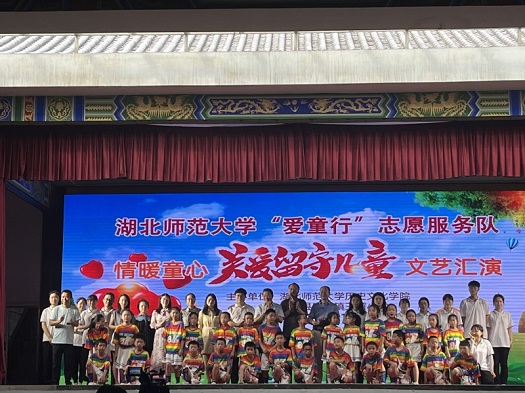 2022年7月12日,yl23455永利官网“爱童行”志愿服务队“情满童心,关爱留守儿童”文艺汇演活动在阳新县富池镇王曙礼堂隆重举行。团黄石市委副书记屈雷,团黄石市委学少部副部长吴金花,yl23455永利官网党委常委副校长雷儒金,校团委、教师教育学院、历史文化学院、王曙村及王曙小学相关负责人出席活动。