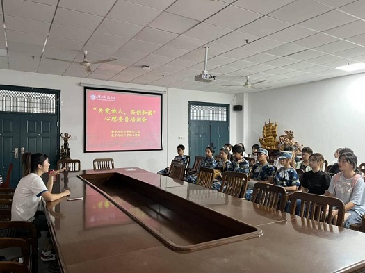 为进一步做好学生心理健康教育工作,加强学生心理委员队伍建设,9月28日中午,数学与统计学院在信息大楼10604举办了“关爱他人,共创和谐”心理委员培训会。参加本次培训会的有数统学院心理部负责人,20、21级各班心理委员以及大一各班军训负责人,本次培训内容由辅导员屈媛媛老师主讲。