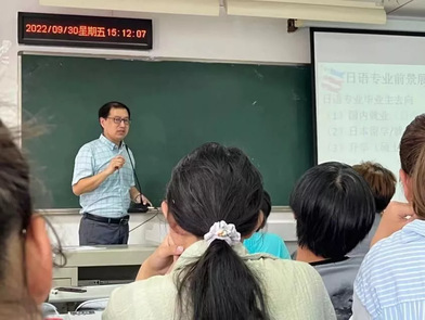 接着,杨钢老师和刘星驰老师分别为新生进行日语及法语专业导读,从专业前景、课程设置、学习方法人才培养四个方面入手,为新生们详细介绍了日语及法语专业的基本情况。