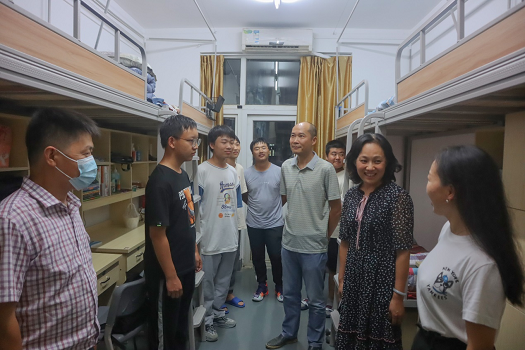 为深入了解22级新生军训过后的生活情况以及国庆假期安排,9月30日晚校党委常委、纪委书记、监察专员陆咏梅同志在计信学院全体领导班子及部分学生干部的陪同下,先后前往9栋以及新二栋学生宿舍慰问新生。