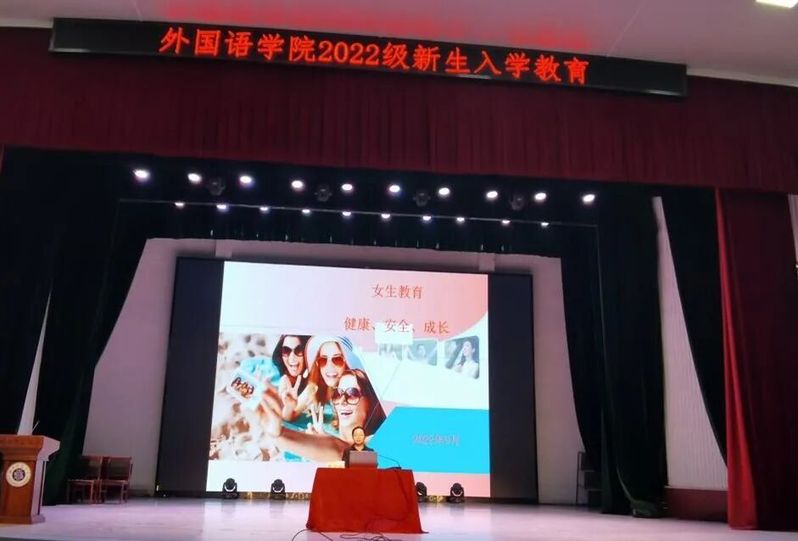 首先,党委副书记曹小为给外国语学院全体22级女生开展女生教育专题讲座。曹老师从任职经历、荣誉奖项、往届优秀学生等方面展开介绍,以案例为切入点,从生理卫生、人身安全、爱情教育三个板块对此专题进行详细讲解。