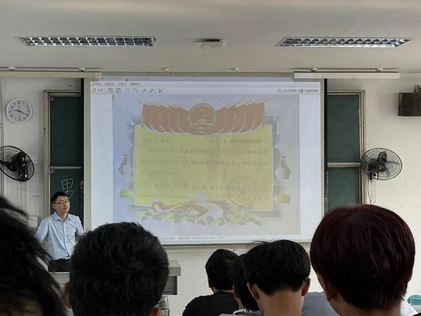 最后,由辅导员黄志军进行“大学生自我成长”专题讲座。黄老师为大家介绍了新生资助政策及党员发展流程,并对全体新生提出期望,希望同学们大学四年好好学习,以学业为重,积极参加科研竞赛,提升个人技能。