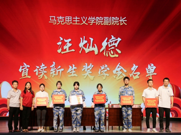 紧接着,进入受聘仪式环节,领导老师为新生各班班主任助理颁发聘书。最后,副院长汪灿德宣读了2022级新生奖学金获奖名单,并举行了隆重的颁奖仪式