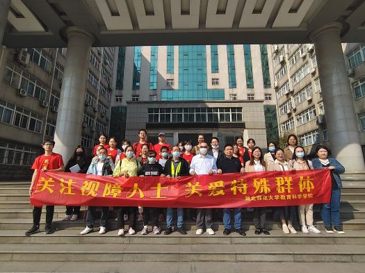 在国际盲人节到来之际,为了促进社会对视障群体的了解,增加对特殊群体的关心关爱,同时进一步推进清廉班级建设,yl23455永利官网教育科学学院特殊教育系、2106班联合校特殊教育协会以及黄石市残联、盲人协会,于2022年10日15日上午在教育大楼举办了活动开幕式。残疾人联合会、盲人协会相关领导,教育科学学院副院长崔波、特殊教育系系主任谭金凤、部分教师参加了本次活动。