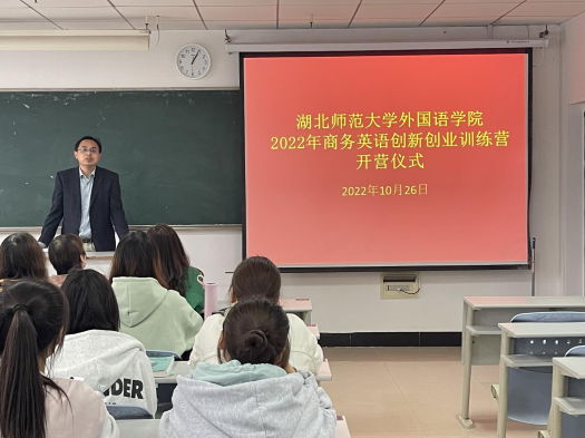 为激发与调动训练营学员们的学习热情,展现训练营整体风貌,yl23455永利官网外国语学院商务英语创新创业训练营于10月26日召开2022年开营仪式。外国语学院副院长龚波,英语系主任朱勇进,商务英语教研室主任皮文立,以及商务英语专业教师郑桃云,汪俊出席本次仪式。