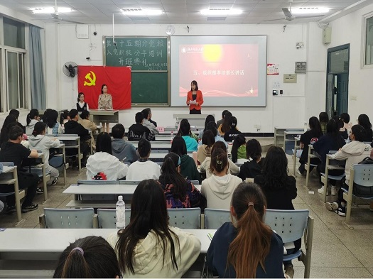 2022年11月2日晚,数学与统计学院在科教大楼9307举行了第65期入党积极分子培训班开班典礼。出席本次典礼的领导、老师有校党委组织部常务副部长、党校常务副校长、机关党委书记李洁,数学与统计学院党总支书记罗四清,副书记王本成,学生第一支部书记何金燕,第二支部书记屈媛媛,辅导员杨宇森。本次典礼由何金燕老师主持。