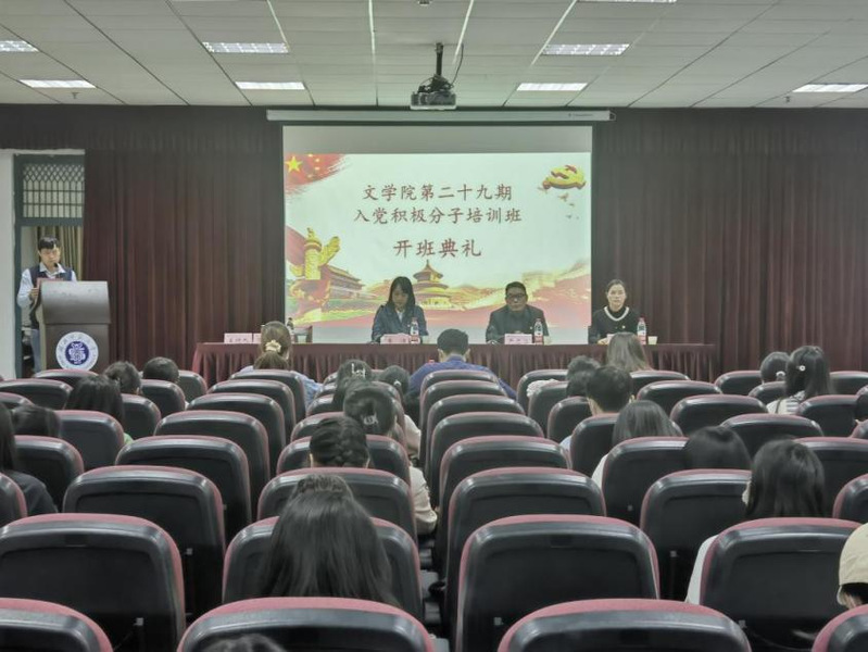 庄严的旋律奏响,全体成员起立高唱国歌。张力宣读了《文学院分党校第二十九期入党积极分子培训班学员管理规定》,对培训纪律、学习考核等方面提出具体要求。汉语言文学专业2101班肖雅倩作为学员代表发言,号召全体学员紧紧围绕党的中心任务,把青春奋斗融入党和人民事业,增强做中国人的志气、骨气、底气,不负时代,不负韶华,不负党和人民的殷切期望!。