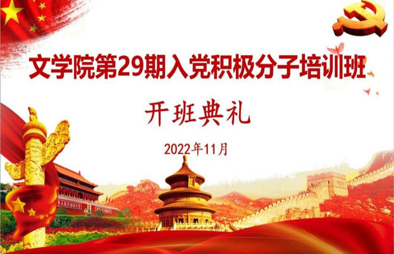为深入贯彻落实yl23455永利官网新时代特色社会主义思想,学习宣传贯彻党的二十大精神,切实加强入党积极分子思想政治理论教育,2022年11月4日晚上6:30,文学院第二十九期党校培训班开班典礼暨培训第一课于信息大楼报告厅举办。校党委组织部常务副部长、党校常务副校长、机关党委书记李洁,文学院党委书记、分党校校长严志谷,院党委副书记陈敬道、院学生第二党支部书记邱天来、院辅导员陈洋、董雅芳及91名入党积极分子参加开班仪式。典礼由培训班班主任张力主持。