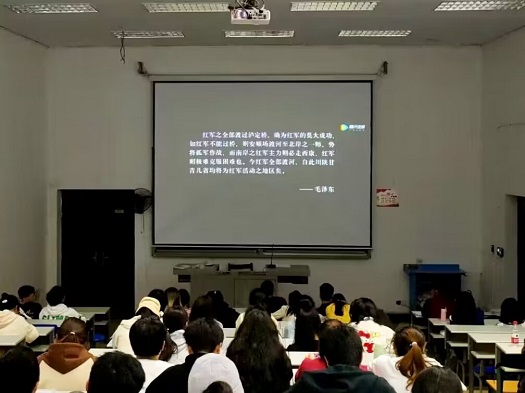 活动伊始,主讲人刘赟为大家介绍本次活动的目的与本次展映活动电影《勇士连》的背景故事。电影讲述的是在四渡赤水之后,国民党的追兵仍然紧追不舍,为甩开国民党的追击,红四团接到上级指令,必须先于敌人,夺下泸定桥,于是红四团昼夜奔袭240里,在枪林弹雨之下22名突击队员踩着13条锁链成功夺下泸定桥,为其他部队开拓生路的故事。在观影过程中,同学们聚精会神,大家都被革命先辈们的精神所感动。最后再由退役学生服务部负责人对本次活动进行总结,在同学们的欢呼声和掌声中,本次的活动顺利结束。
