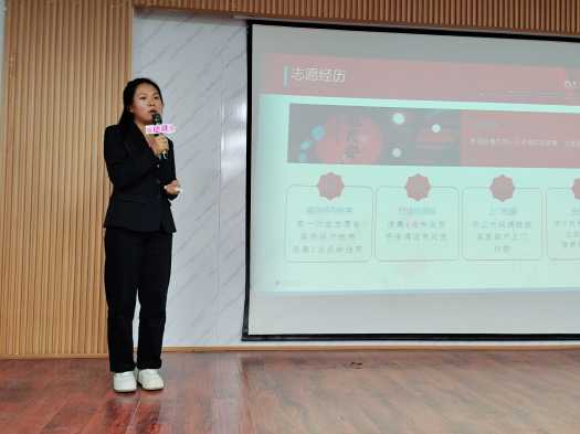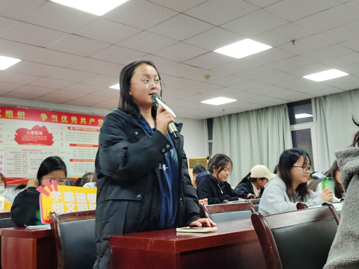 紧接着,在座师生共同观看道德模范的事迹,感受平凡的道德榜样身上闪烁着的不平凡的时代力量。2107班江珊同学分享了她的成长和学习故事,她积极用科学理论武装自己的头脑,不断突破自我;2107班范鑫雨同学则分享了她与家乡的抗疫故事,她与千千万万青年一同,用青春的力量,将“奋斗”二字写在了抗疫一线,彰显了新时代青年的责任与担当。