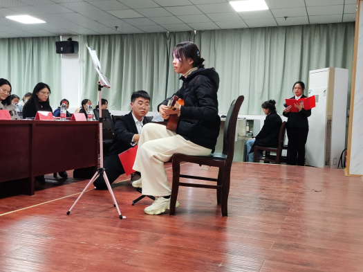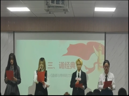 随后,2107班余梦涵同学的吉他弹奏歌曲《城南花已开》和学生代表朗诵的诗歌《道德与榜样的力量》,让在场所有人在诗歌中一起感受中华民族道德之行的文明特色。