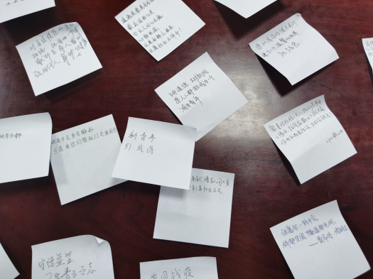 最后,在“送祝福”环节,在场师生纷纷写下对道德模范的美好祝福。