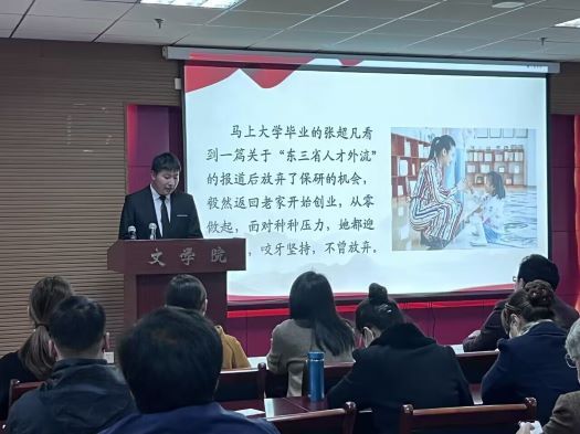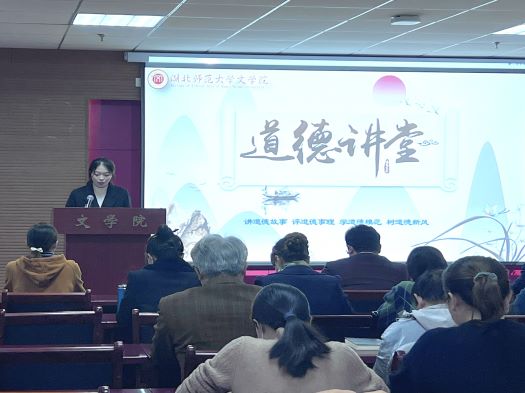 为宣扬助人为乐、见义勇为、诚实守信、敬业奉献和孝老爱亲的道德品质,激励文学院师生不断提升道德素养,构建成仁尚德的良好氛围。2022年11月24日下午1:30,文学院联合教务处于人文楼21A602会议室开展“砥砺前行,笃行致远”道德讲堂。学院党政领导班子,教务处副处长周艳华、办公室主任廖煜,学院全体教师党员、学生党员代表及入党积极分子代表参加讲堂,讲堂由汉语国际教育专业2004班张梓谦主持。