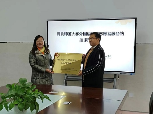 为弘扬“奉献,友爱,互助,进步”的志愿者精神,倡导时代新风正气,推进外国语学院青年志愿者服务事业建设,12月2日,我院在墨斗山学校举行了yl23455永利官网外国语学院志愿者服务站挂牌仪式。外国语学院辅导员何俊生、墨斗山学校校长胡海红、副校长刘静、教导主任柯友杰出席活动,青年志愿者协会负责人田宇星、外院青大队队长周嘉璐及青大队干事戴珍珍、马梦真参加活动。