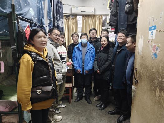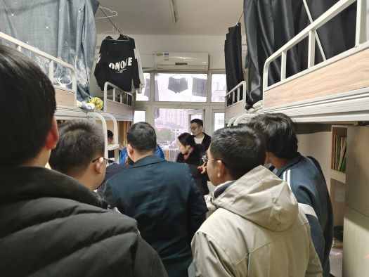 陆咏梅和院领导一行深入走访对接包保学生和新疆籍少数民族学生宿舍,对同学们表达了新春祝福和新学期的美好祝愿,并仔细询问学生假期学习生活状况,关心慰问同学们假期疫情感染情况,了解引导学子们合理树立本学期计划目标。得知新疆籍少数民族学生假期期间没有回家,假期留在湖北参加勤工俭学后,老师们与学生谈工作收获和不足,勉励学生在奋斗激扬青春之声,以实干创造美好生活。