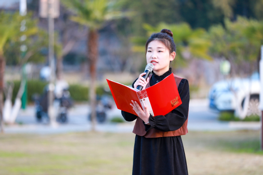 学生代表宋鑫可作国旗下的演讲,她围绕“以青春之我 树优良学风”主题,号召青年学子以更饱满的精神状态践行党的二十大精神,牢记“诚毅勤敏”校训,弘扬德艺双馨精神,传承师范育人使命,为营造比学赶超的优良学风氛围积极努力。随后,四名学生代表合唱《领航》,在歌声中感悟信仰力量,展现青春的蓬勃朝气,歌唱出新一代“请党放心、强国有我”的热血激昂。