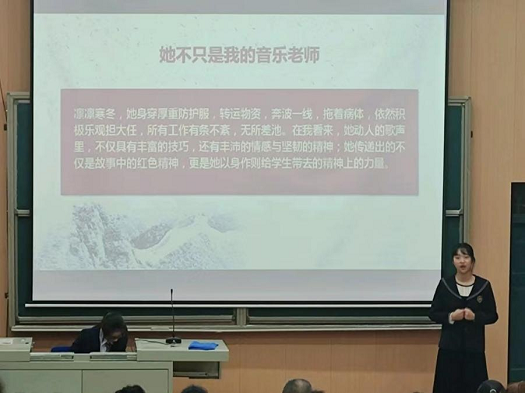 比赛伊始,主持人对比赛的各项要求和规则进行详细的介绍。在上半场比赛中,演讲选手们挖掘故事背后的伟大精神及对当代社会的重要意义,以最饱满的激情投入到演讲中,让一个个红色经典故事逐渐鲜活,动人心扉。中场休息环节,外国语学院的杨灏同学深情献唱歌曲《我》,缓解了选手们的紧张情绪。下半场比赛中,选手们之间进行了更加激烈的比拼,以饱满的热情与自信的身姿给观众带来了一场视觉和听觉盛宴。选手演讲结束后,席德强老师对选手们的精彩表现进行点评,并给出了许多指导性的建议,希望同学们在今后的比赛中更加注重讲解的逻辑性,让故事的讲解更为精彩。本次比赛中,刘秋秋团队以激昂的演讲斩获一等奖;周岚曦、黄佳宁以其精湛的演技荣获二等奖;肖嘉睿、徐梓烨、周心怡凭借充分的准备以及良好的台风获得三等奖。