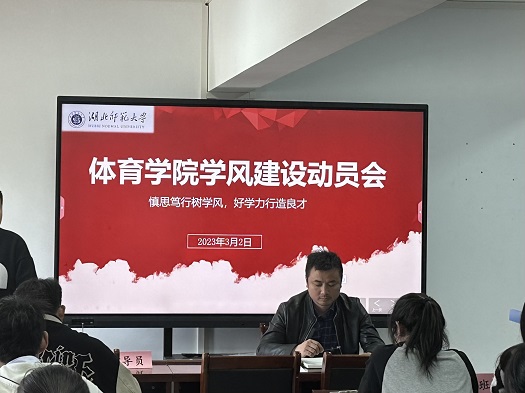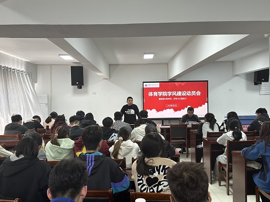 为进一步深化学风建设,形成良好的育人环境和浓厚的学习氛围,实现“慎思笃行树学风,好学力行造人才”的学风建设目标,3月13日十二点半,体育学院于体育馆多媒体教室开展了学风建设动员会。体育学院辅导员、团总支学生代表、各班班委参与此次会议。