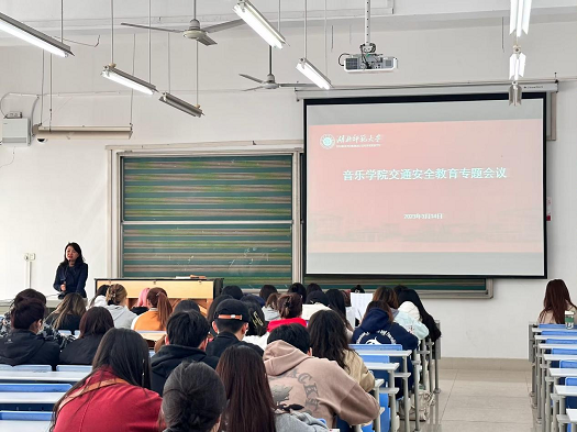 为进一步加强校园交通安全教育宣传,切实提高学生的交通安全意识。3月14日,音乐学院在13405教室召开交通安全教育专题会议,音乐学院党总支副书记罗杨、辅导员余景涛、付思墁老师,全体电动车车主参会。