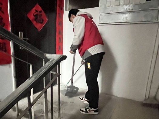 当天上午7时,体育学院学生第一党支部书记刘洋,带领本科生和研究生党员,身穿“红马甲”来到师院社区开展志愿活动。他们有的走进居民楼,将楼道中的垃圾逐一清除干净;有的沿着人行道,将路面、街角的烟头、纸屑等垃圾一一夹进垃圾袋;有的在马路边站岗,劝导行人别乱穿马路。