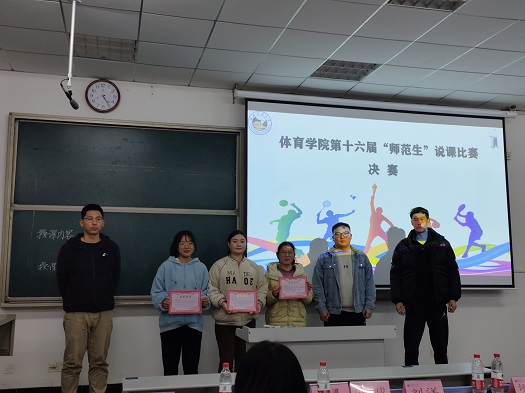本次决赛在主持人刘莹同学的主持下有序的进行着,各评委老师根据选手的现场演绎对选手进行打分,参赛选手流畅的演讲,出色的表达能力和技能展示,得到了评委老师们的一致好评。经参赛选手的激烈比拼:2001班安海林获得一等奖,2001班王晓行同学获得二等奖,2002班曹梦林同学获得三等奖。比赛的最后,朱施成副院长对本次比赛做出了精彩的点评和总结,认为本次说课比赛的成功举办,为师范生提供了一个学以致用的实践和交流平台,增强就业竞争力起到了积极促进作用,也肯定了师范生的说课能力,鼓励师范生继续加油,不断学习,不断加强自我,努力提高自身专业知识和教学能力,紧跟时代的步法,以更好的姿态投身到教育事业当中去,成为一名优秀的体育老师。