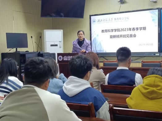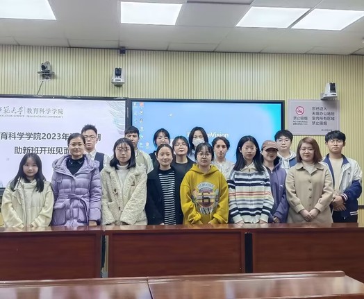 为了增进助新班老师和学员之间的沟通交流,培养师生情谊,教育科学学院学生会秘书部和自律委员会秘书部于2023年3月23日晚在教育大楼1316开展2023年春季学期助新班见面会。辅导员刘丽娟,助新班讲师陈润琰、陈洁雪、马昊天,以及助新班全体学员参加本次会议。