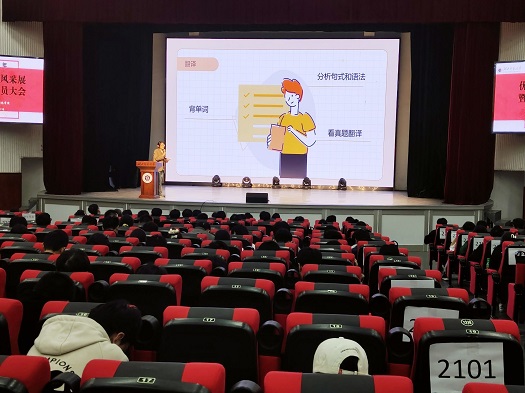 活动伊始,任小聪老师宣读了表彰文件,号召学生从自身做起,发挥主体作用,以榜样立学风,遵守课堂纪律,端正学习态度;学生代表金润景分别从如何预习、整理笔记、合理利用资源等方面介绍了自己的学习经验,并给予了学弟学妹大学四年的学习建议;随后薛博分享了自己参加各项竞赛的经验,帮助同学们明晰追求和目标,鼓励大家在大学阶段至少参与一次竞赛,提升专业能力和眼界;王丽娟从题型分布、答题技巧、做题顺序三个方面介绍了英语四级的考试经验;最后黄新望老师从学位授予、考研、留级、学生违纪、学业预警、国网录取六个方面分析我院近五年学业状况,警醒同学们重视自己的学业情况,也对学生未来规划提出几点建议,并对本次学风建设活动提出了美好的期望。