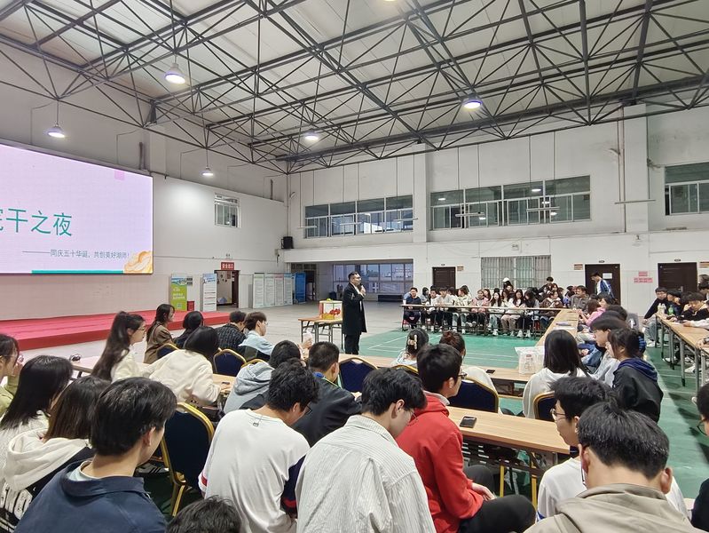 手牵手同庆湖师五十年华诞,心连心共创电气学院辉煌。3月30日晚6时30分,电气工程与自动化学院在若水轩三楼大学生活动中心举办了,以“同庆五十华诞,共创美好湖师”为主题的第二届“院干之夜”活动。本次活动的参与人员有辅导员任小聪、黄新望以及团学青自全体学生成员。
