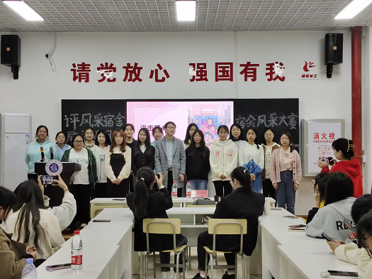 首先,主持人高晨瑶向大家介绍了此次宿舍风采大赛的评委以及本次比赛的评分细则。随后,各寝室代表依次上台介绍了寝室成员,以PPT和视频相结合的方式展现了寝室特色和风采。最后,黄志军老师对此次比赛进行了点评与总结,鼓励寝室成员之间以友爱、团结、进步的姿态,展现良好的文明风貌。经过综合评分,本次活动排名前三的寝室分别为25栋834、25栋927、25栋703。