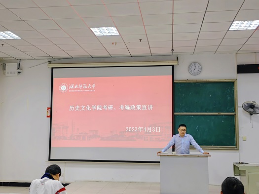 为进一步帮助大三学生认识当下局势、明确人生目标,同时全面了解考研考编政策,增强学生备考信心。4月6日晚上七点,历史文化学院在人文楼T05召开2024届考研考编政策宣讲会。宣讲会特邀仁信教育李老师主讲,历史文化学院杨绍浩老师、郑甜甜老师以及学院2020级学生参加了本次宣讲会。