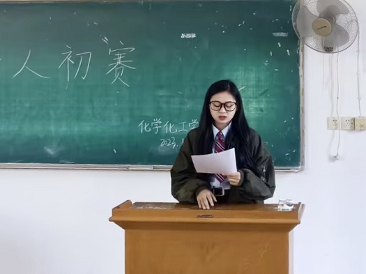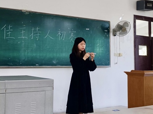 为促进同学们的语言表达能力,化学化工学院学生会文体部于4月8日下午在教育大楼1J11教室举办“栉风沐雨五十载,颂迎华诞谱新章”十佳主持人比赛初赛,校大学生艺术团主持队队长韦祎淼、化学化工学院学生会副主席黄俊杰、文体部部长刘祎萌担任评委。