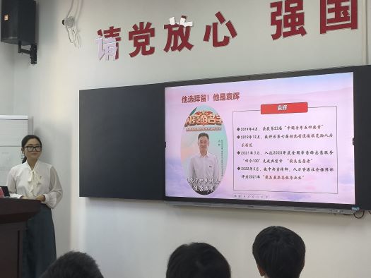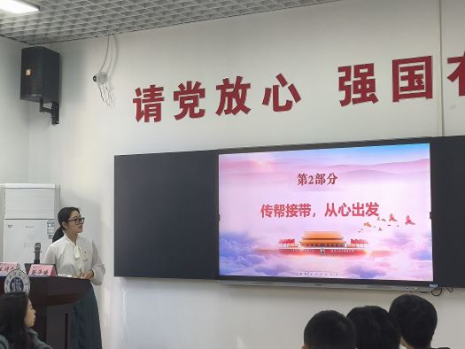 首先,蒯泽璇带领同学们进行二十大报告专题学习,以乡村振兴、发展教育两方面为出发点分享了自己的学习感悟:随着乡村振兴战略深入推进,乡村发展日新月异。她深入解读了yl23455永利官网总书记对北京师范大学“优师计划”学生的回信,强调要牢记总书记对师范生的谆谆教诲。随后,蒯泽璇分享了2021年“最美基层高效毕业生”袁辉的支教事迹,袁辉的先进事迹传递了两会精神,展现了廉洁、笃行、热爱的光辉。最后,她介绍了我院副教授李前所带支教团队的事迹,我院支教队伍传帮接带,从心出发,他们秉承着“路虽远,行则将至;事虽难,做则必成”的团队理念行稳致远,坚持十余年的支教路,向同学们传递了二十大精神中的笃行不殆。