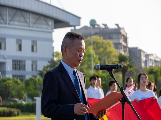 叶济宇进行国旗下的演讲。他表达了对母校的深厚情感和殷切祝福,从自身从事基础教育二十余载的经历出发,号召在校学生锤炼意志品质、保持教育初心、夯实专业知识,努力成为一名“四有”好老师。