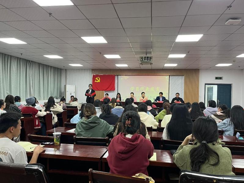 活动伊始,学生支部书记黄志军老师宣读了《六十六期党校培训班学员管理规定》,并勉励党校学员要严于律己、努力学习。随后,由外国语学院“优师计划”2201班学生代表李欣燃发言,她代表所有党校成员庄重宣誓:珍惜本次学习机会,端正入党初心,恪守党校学员守则,坚定理想信念,坚决向党组织靠拢。接着,由党委书记王海燕讲话。王海燕书记寄予所有学员三点希望:第一,坚定理想信念,端正入党动机;第二,改正学习态度,珍惜学习机会;第三,提高自身修养,做到知行合一。王海燕书记还激励同学们在生活和学习中做好表率,不断提升理论素养,争取早日成为一名光荣的共产党员。
