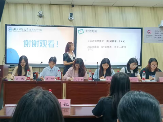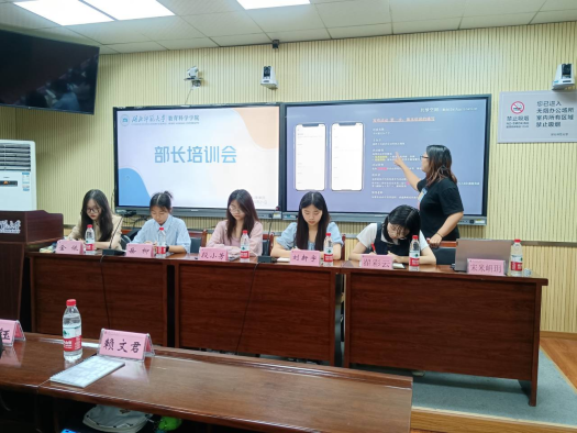 活动伊始,岳柳向新任学生干部们说明采购的具体流程,强调要提前告知学生会秘书部需要采购的物品详情,再上报给辅导员老师,经辅导员老师同意后进行统一购买,始终按规定流程进行。接着,前青媒部长赖文君和刘钰分别上台讲解了通讯稿与推文的格式要求,并列举了部分部门曾出现的错误来提醒各学生干部。随后,宋米岍玥详细地给新任学生干部们展示了如何使用到梦空间及怎样及时解决出现的问题。之后,团副主席团就本次会议内容对各部门学生干部进行提问,检验并强化了新任学生干部们对会议内容的认识与理解。最后,团副主席总结了本次会议的主要内容,并对新任学生干部寄予厚望。