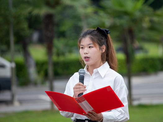 学生代表2201班徐欣雨同学进行了国旗下的演讲。她号召全体湖师学子,践行“诚、毅、勤、敏”的校训,坚定理想信念,把握时代机遇,勇担历史重任,争做新时代有为青年,以实际行动迎接建校50周年。