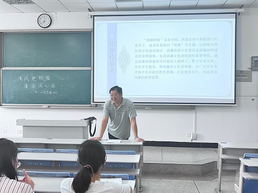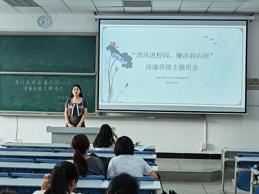 为深入学习贯彻党的二十大精神,积极响应中共中央《关于加强新时代廉洁文化建设的意见》的精神,进一步加强校园廉洁文化建设,培养大学生廉洁意识,6月4日晚,文学院利用“周末晚点名”在科技大楼以班级为单位开展“清风进校园,廉洁润心田”主题班会。此次班会由各班班主任主持,全体同学参会。