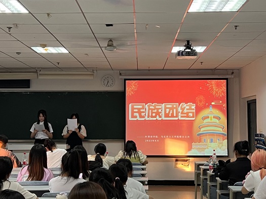 为加强各民族同学间的交流与团结,增强各民族同学间的凝聚力,围绕各民族“共同团结奋斗、共同繁荣发展”的民族工作主题,马克思主义学院联合外国语学院于6月1日在人文楼409教室举办了以“民族团结谋复兴,和衷共济向未来”为主题的民族团结宣讲比赛决赛。马克思主义学院辅导员郑小蓉老师,外国语学院辅导员罗兰老师和何俊生老师担任本次比赛的评委。