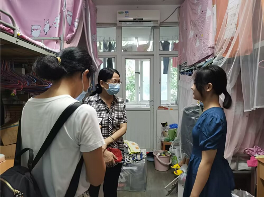 检查之前,秦姗姗老师提前告知同学们学生宿舍检查的要求,并向查寝人员转达了文明宿舍的检查标准。在活动过程中,老师们走进学生们的寝室,对宿舍和楼道卫生进行了细致全面的检查,给予了同学们耐心详细的指导说明。最后,老师们也不忘提醒同学们要增强安全防范意识,自觉维护宿舍环境整洁和用电安全。宿舍在同学们进一步的打扫与整理下,变得更加干净整洁。