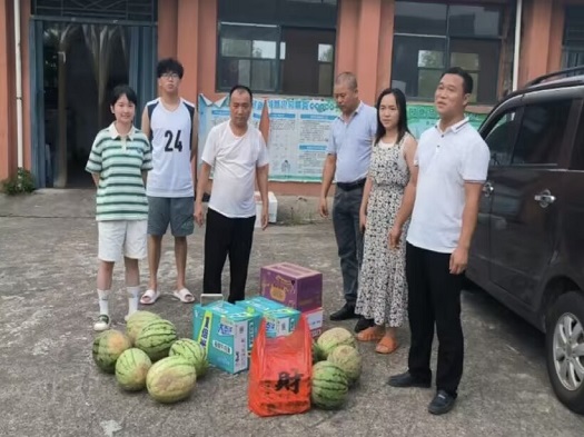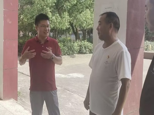 参观过程中,陈兮老师、费新法书记与成员们展开了亲切交谈,深入了解大学生“三下乡”社会实践活动和学习生活情况,并对工作做出相关指导:一是要充分发挥自身的专业能力,在实践中接受教育;二是要注意人身安全,避免中暑;三是要了解民情,与学生家长积极沟通,学有所为。费新法书记在对队员们的工作表示肯定的同时,激励大家再接再厉,继续保持支教服务的热情,将新时代大学生的风采展现出来。随后,领导老师们来到食堂与宿舍参观,询问成员遇到的问题并送来慰问物资。