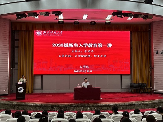 为帮助新生尽快适应大学生活,顺利完成从中学到大学的角色适应和角色转变,进一步引导新生客观认识自我、建立合理生活秩序、养成良好学习习惯、规范个人行为、树立远大的奋斗目标,在人生的新起点上迈好坚实的第一步。9月10日晚,文学院在教育大楼报告厅开展2023级新生入学教育第一讲。此次讲座由文学院院长李治平担任主讲,党委副书记郭笑笑主持,2023级全体新生参与。