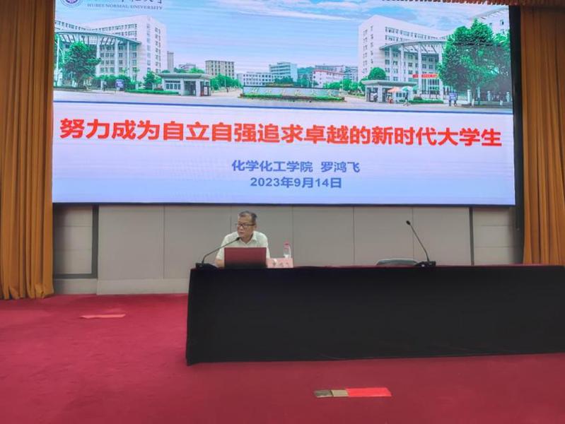 9月14日,化学化工学院党委书记罗鸿飞以《努力成为自立自强追求卓越的新时代大学生》为题,为学院2023级新生作入学教育专题报告。395名本科新生在教育大楼学术报告厅参加报告会。辅导员郭先哲主持会议。