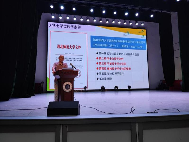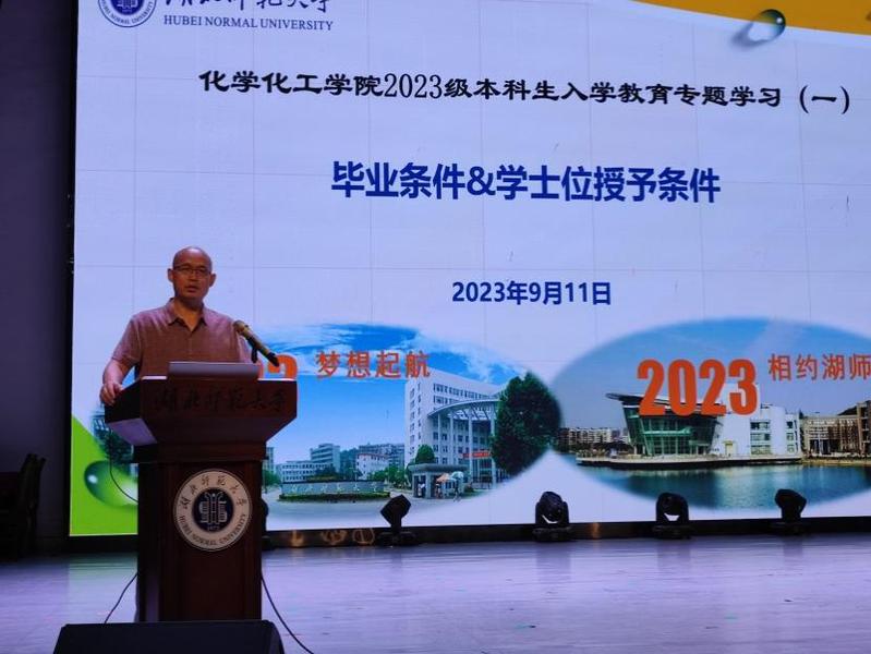 为营造立规矩、抓学风、争先进的浓厚氛围,帮助新生明晰发展方向,更好地适应大学生活,化学化工学院于9月11日下午在湖师大礼堂举办校纪校规专题辅导讲座,学院分管教学工作副院长周兴旺,辅导员李海泉、郭先哲担任主讲人,学院全体2023级新生参加。